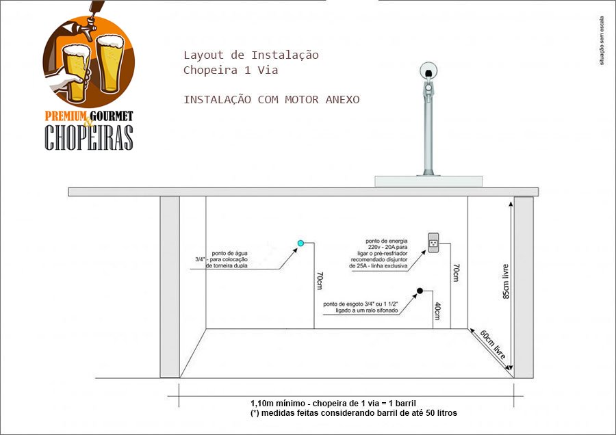 VERIFIQUE NAS IMAGENS AO LADO E/OU NO MANUAL DA PREMIUM GOURMET & CHOPEIRAS A INFRA-ESTRUTURA NECESSÁRIA PARA A INSTALAÇÃO DA CHOPEIRA. Na dúvida solicite orientação de um de nossa empresa.